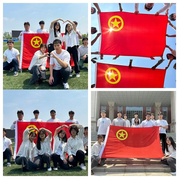 阳光灿烂的校园里,团员们佩戴团徽,以各种形式和创意开展“我和团旗合个影”活动。他们向团旗敬礼、重温入团誓词、展示团员证、手拉手摆出各种手势造型,一张张灿烂的笑脸,鲜活地展示了青年团员们朝气蓬勃、青春向上的精神风貌。每一张合影,都彰显了团员们青春的无限活力,表达了他们“热爱祖国,向善向上”的青春誓言。