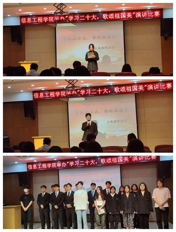 为深入学习宣传贯彻党的二十大精神,深入开展社会主义核心价值观宣传教育,厚植爱国主义情怀,传承红色基因,传媒与设计学院参加了信息工程学院于2023年5月17日在南阶203开展的“学习二十大,歌颂祖国美”主题演讲比赛活动,同学们在红色经典的浸润下,追忆峥嵘岁月,感恩和平年代。