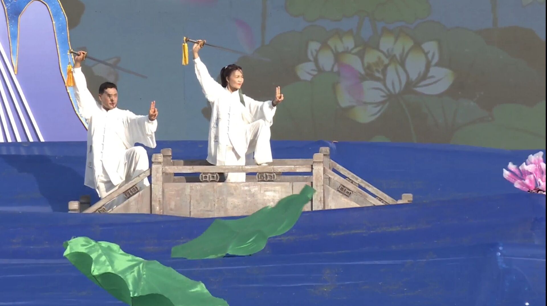 《山水亭城》篇借山水以抒情,以名篇彰显名城。由演员扮演的欧阳修置身琅琊山景,徜徉流水潺潺,吟诵千古名篇,结合抒情性的舞蹈和太极拳表演,展现了滁州的“名人、名篇、名山、名水”。现场表演、视屏画面和画外解说相结合,突出地域色彩,强化文化符号。