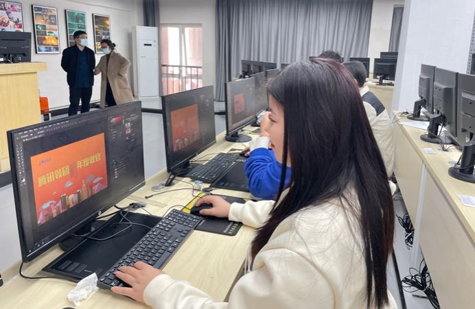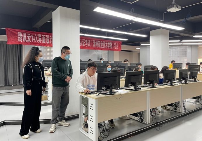 11月26日,传媒与设计学院设计艺术系于德馨楼300教室开展“1+X”界面设计职业技能等级证书(中级)考试,20级及21级艺术设计专业的25名学生参加。本次界面设计“1+X”职业技能等级认证考试由腾讯云公司主办,考试包括理论考核和实操考核两部分,均采用上机操作考试。此次考试全面考核了动效设计、广告图等界面设计技能及相关专业知识。