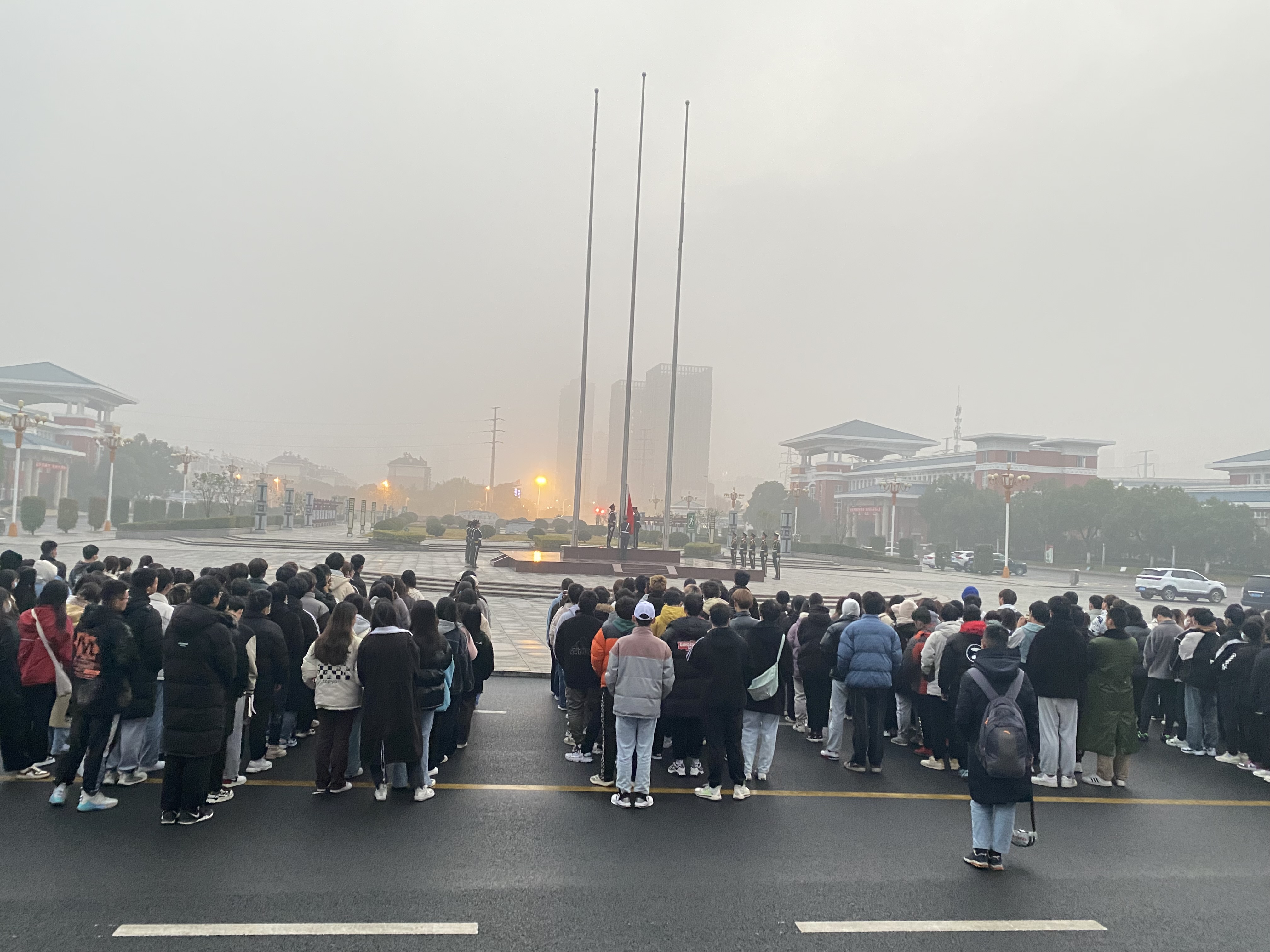 为激发爱国热情,增强民族自豪感,树立自信心,使同学们坚持初心,勤奋学习,为国家出一份力、发一份光。传媒与设计学院团学组织于12月16日上午7:00在综合楼国旗下举行升旗仪式。