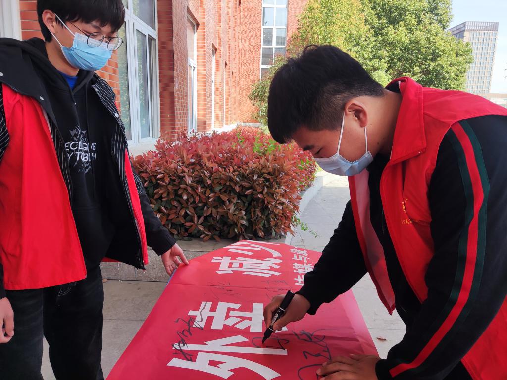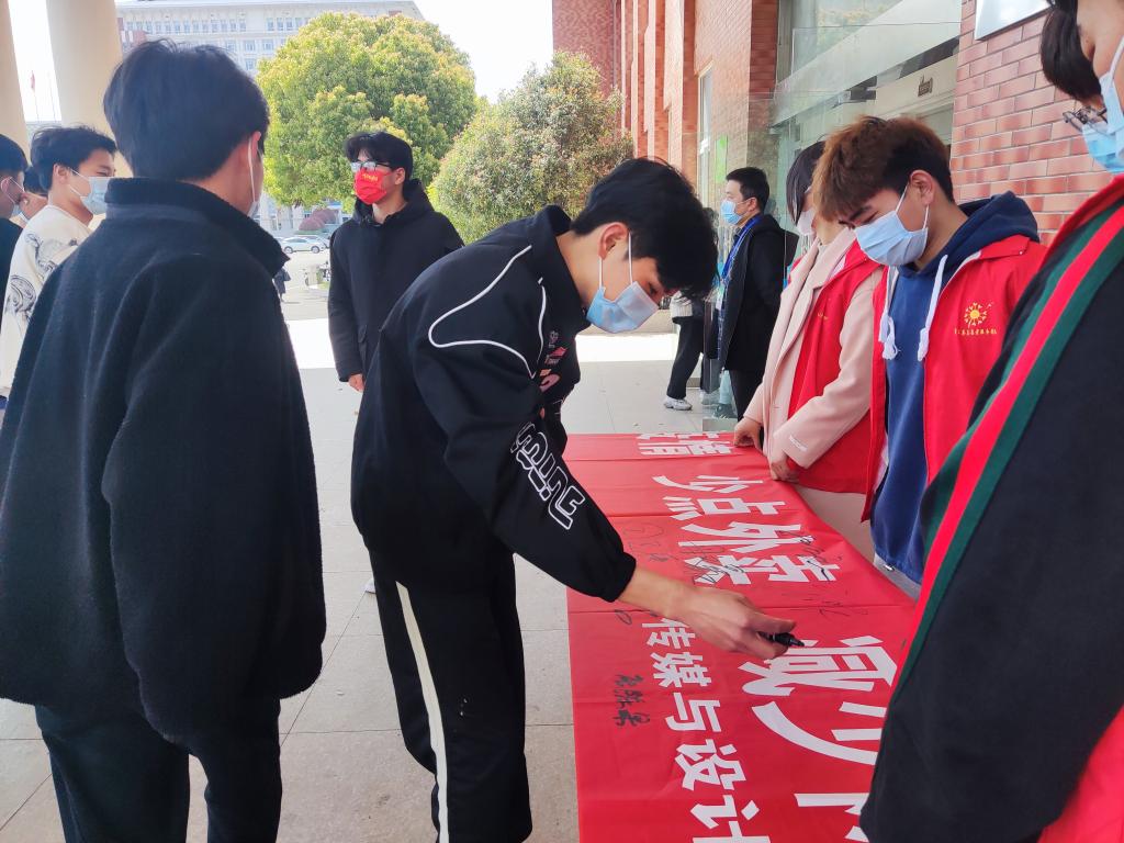 传媒与设计学院:团总支开展“减外卖少网购,共偕手防输入”主题倡议签名活动