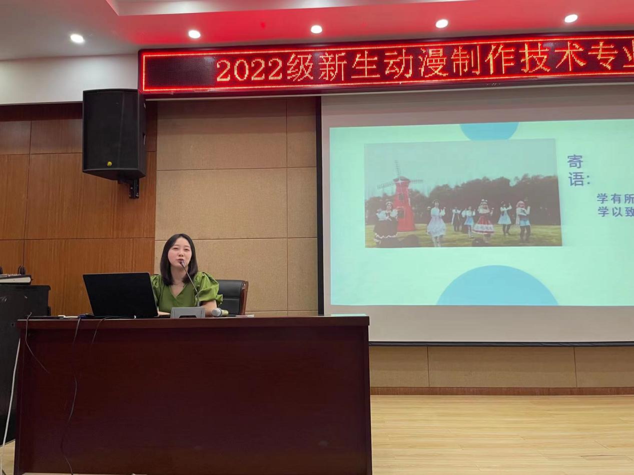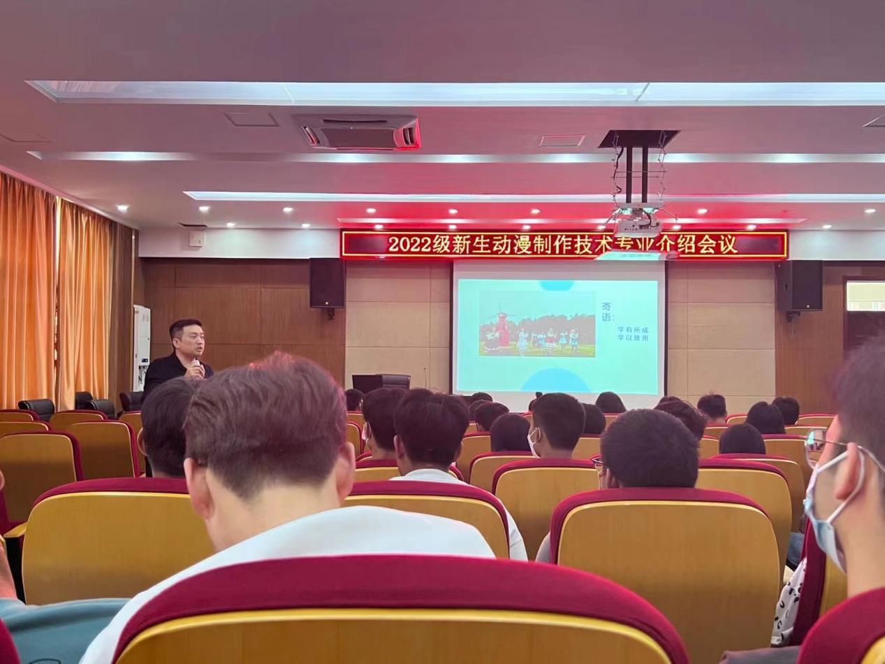 为促进2022级新生对所学专业进行认识和了解,让新生更快明确学习目标与方向,合理规划大学学习与生活。9月27日,传媒与设计学院在南阶205教室召开专业介绍大会,会议由动漫制作技术专业负责老师范文娟主持,动漫制作技术专业教师周苏亭、尚彩云、薛梦琪、郭伟、吴涛、阚迪、匡卓凡及2022级全体新生出席本次会议。