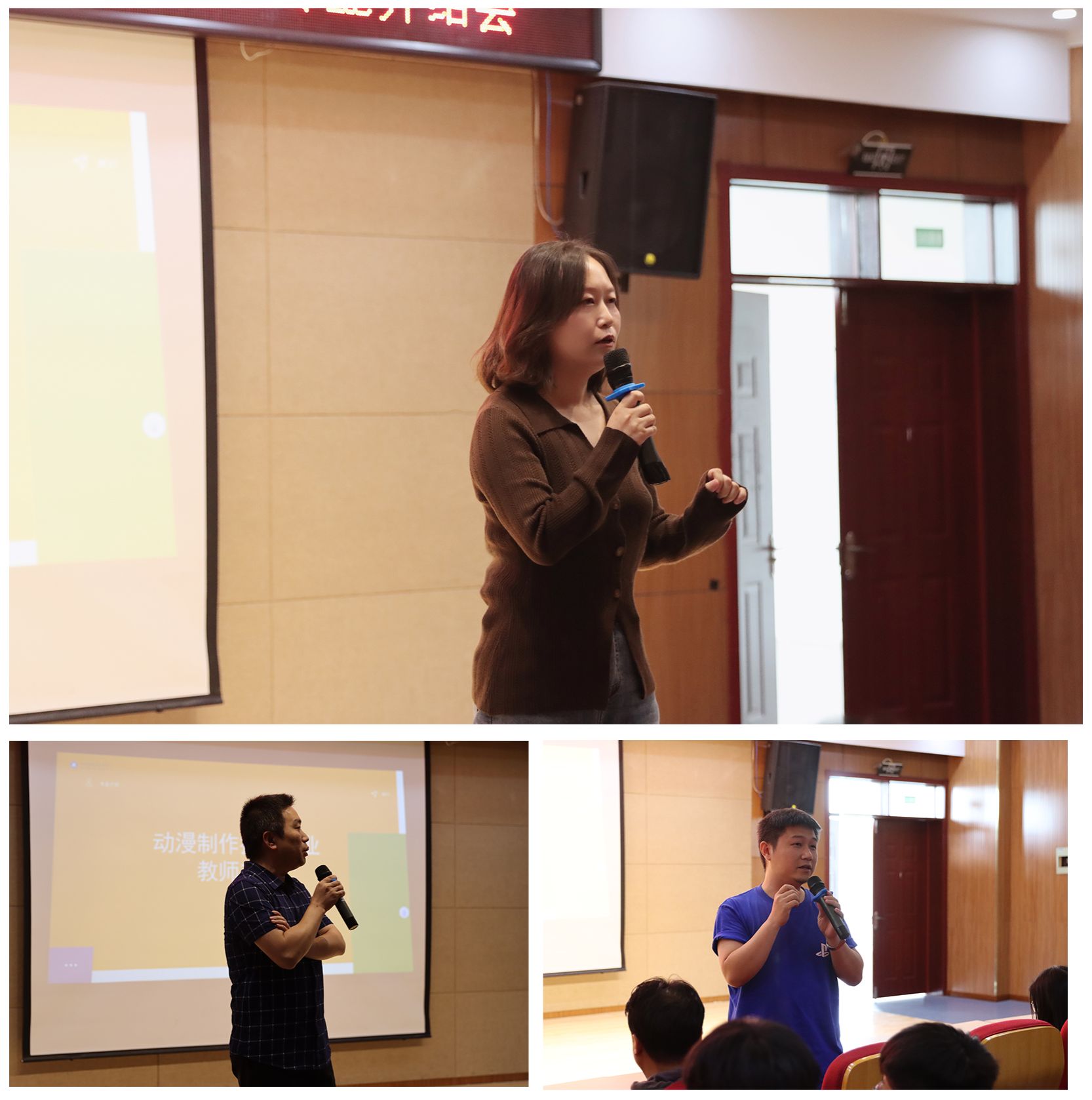 随后,范文娟老师从大一、大二、大三的任务分解角度出发,鼓励新生们要努力学习、不断进取。她指出,动漫制作技术专业是一个需要不断实践和创新的学科,希望新生们能够尽快适应专业学习,积极参与到各种实践活动中来。周苏亭老师则详细介绍了动漫制作技术专业的实训室、产教融合、毕业就业相关事宜,他表示将全力为新生们的成长和发展提供支持和帮助。王一超老师则鼓励大家不管是二维动画还是三维动画,都要找准自己喜欢的方向,积极努力投身到自己热爱的事业中去,并为之不懈努力。