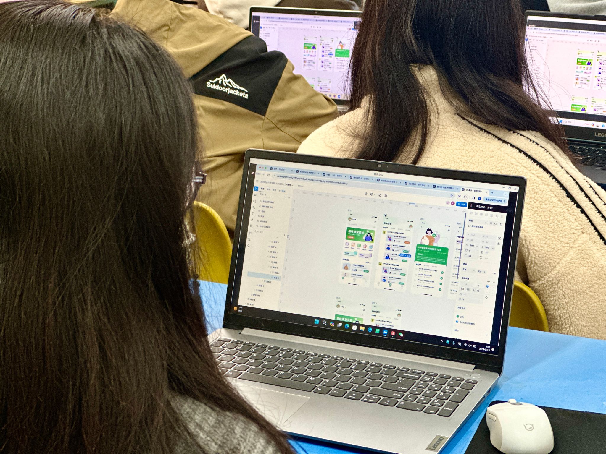 本次集训分为两大核心板块,苏老师首先从AIGC应用角度解读国家级竞赛真题中,企业、产品应当如何把握技术浪潮、将前沿技术与合适的应用场景结合,并快速建立自身的竞争力等方面给出了具体方法论和行动路径。其次,苏老师通过构建在线学习社区,以实时共享操作界面的方式,带同学们对全球首款全面开放的人工智能 UI设计工具进行实操分步教学,同学们跟着老师教学步骤,了解并学会从设计稿的组成逻辑、演变情况,以及与设计目标的匹配,最后生成符合用户预期的成果。最后,同学们和企业老师进行了线上讨论和交流。