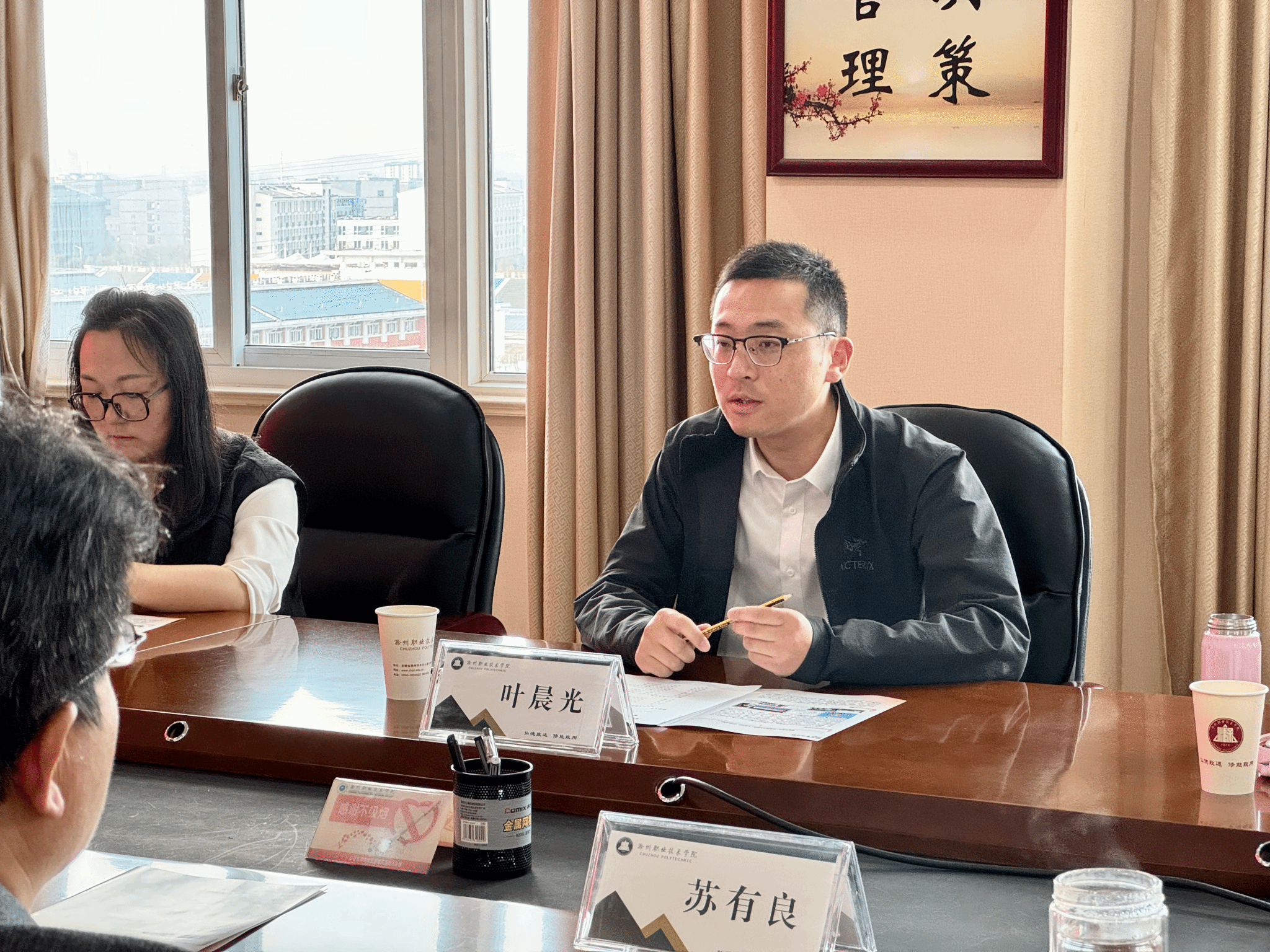 苏有良对滁州市文旅集团一行的到访表示诚挚欢迎,详细介绍了学校的发展情况,并期待双方在人才培养、协同创新、项目开发等方面展开深入合作,为推动滁州市经济发展做出贡献。