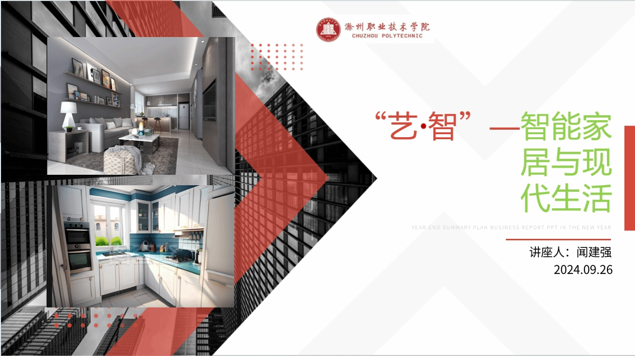 随着物联网、云计算、AI人工智能等新技术的发展,智能家居得以快速融入社会发展的方方面面,能让用户利用智能手机等终端设备来控制各个环节运转的电器,实现远程交互、场景展陈、联动和定时运行等功能,极大地方便了人们的工作、生活和学习。9月26日,闻建强副教授主讲“‘艺-智’智能家居与现代生活”讲座,2024级室内艺术设计专业120多名新同学现场聆听。