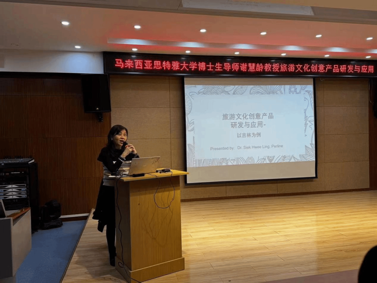 11月19日下午四时,马来西亚思特雅大学博士生导师谢慧龄教授莅临beat365,于南阶203教室成功举办了一场题为“旅游文化创意产品研发与应用”的精彩讲座。此次活动由学校中外合作办学办公室主任李学军担纲主持,传媒与设计学院动漫制作技术专业负责人王一超老师、相关辅导员以及2022级、2023级动漫制作技术(中外合作)班的全体学子共同聆听了这场学术盛宴。