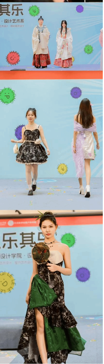 这次毕业设计的主题是中国故事,分三个类别,汉服,礼服,旗袍。答辩现场,毕业生同学纷纷呈现出了自己精心设计的作品,作品既包含了传统服饰元素融入了现代的设计理念,又包含时尚科技风格的特色服装,展现了学生对于服装与服饰设计的深刻理解和独到思考。
