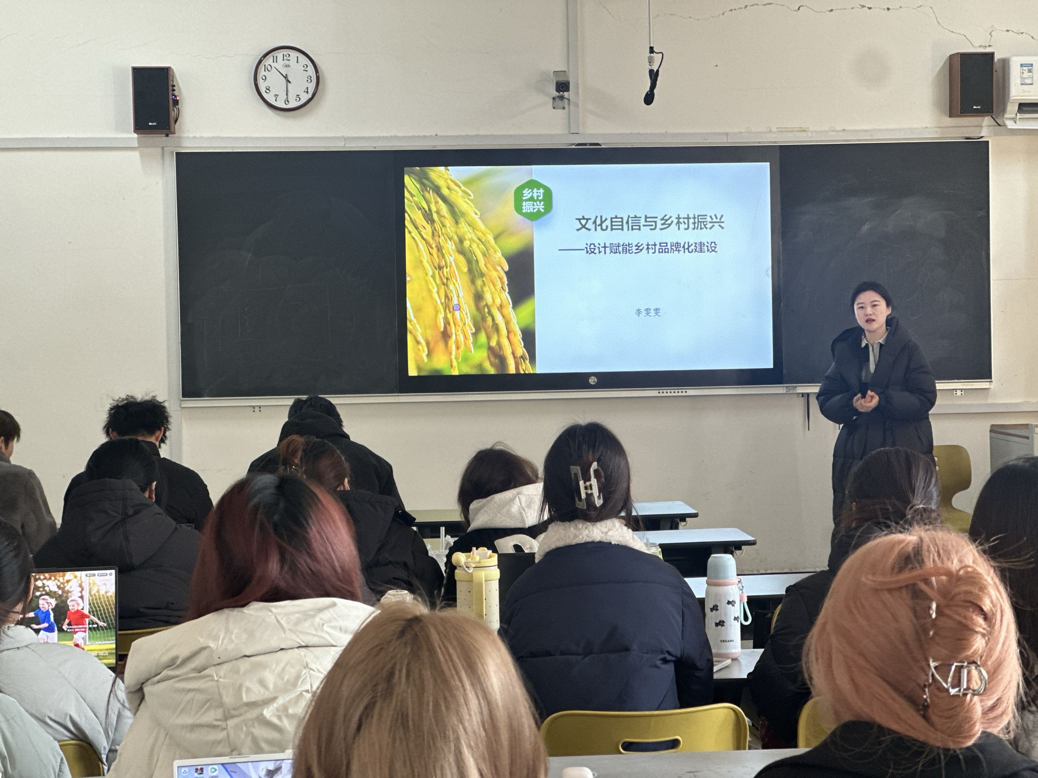 2024年12月25日下午4:20,传媒与设计学院李雯雯副教授在致学楼4505教室开展了题为《文化自信与乡村振兴———设计赋能乡村品牌化建设》主题讲座。讲座由数字媒体系匡卓凡老师主持,数字媒体系近百名学生聆听讲座。
