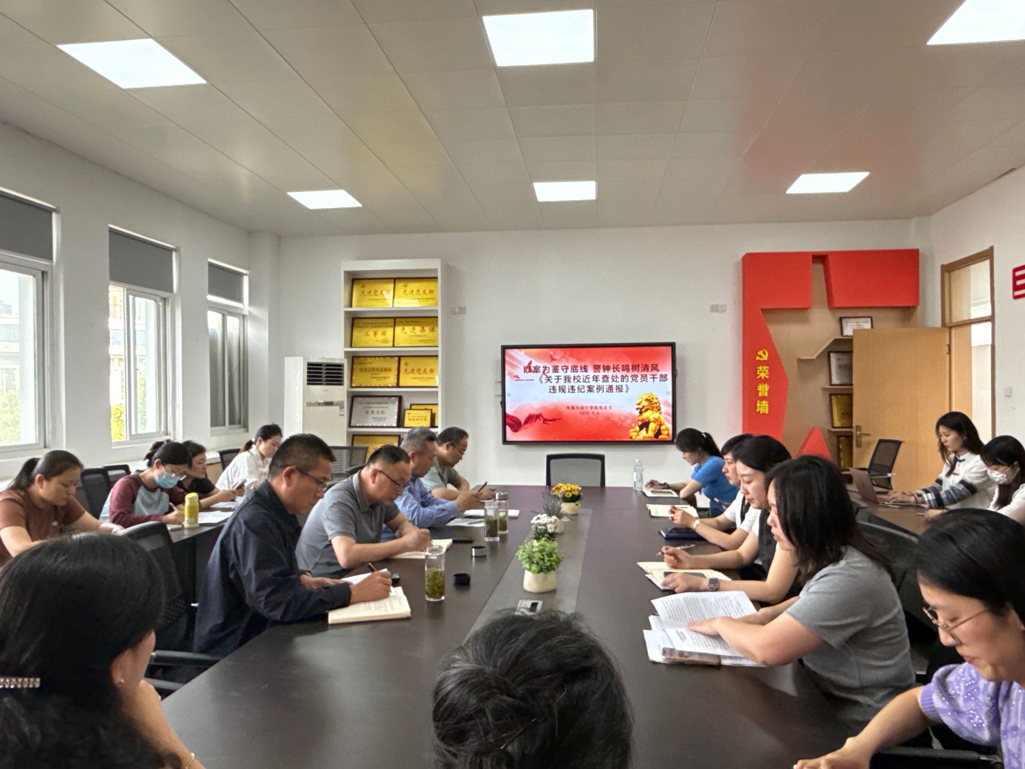 会议伊始,院党总支纪检委员范文娟领学《关于beat365近年查处的党员干部违规违纪案例通报》文件,这些违反中央八项规定精神案例、师德师风失范案例暴露出部分党员干部纪律意识淡薄、师德底线失守、权力监督缺位等问题,全体教职工需引以为戒,严守纪律红线。