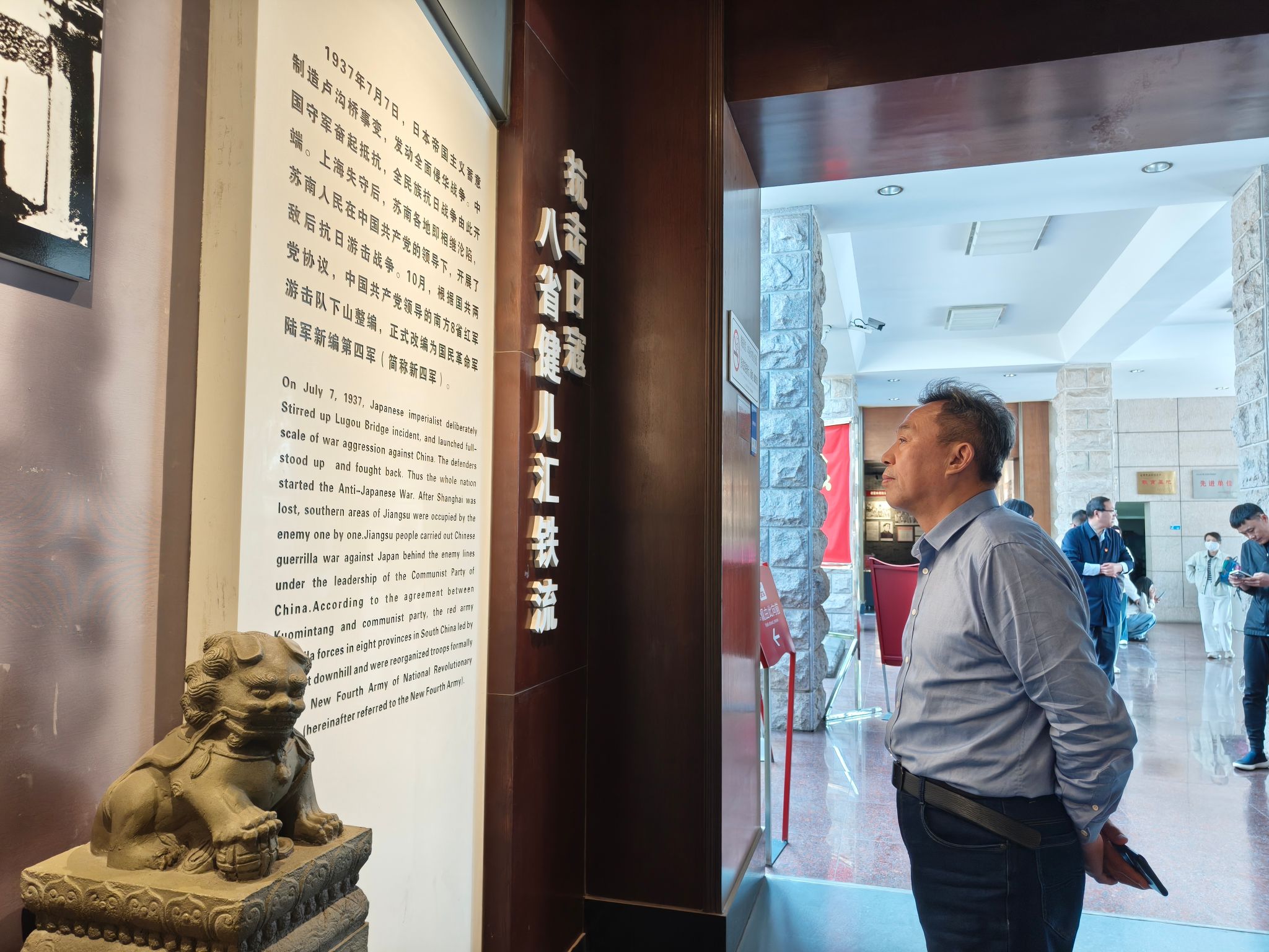 在茅山新四军纪念馆内,全体党员教师在讲解员的带领下,依次参观了“苏南人民奋起抗击日本侵略军”“茅山抗日根据地的开辟”“苏南抗日根据地的艰苦坚持”等主题展厅。一件件珍贵文物、一幅幅历史照片、一段段影像资料,生动再现了新四军将士在茅山地区浴血奋战的峥嵘岁月。大家驻足凝视,深刻感悟“铁军精神”的丰富内涵,对革命先辈坚定的理想信念和不怕牺牲的奋斗精神肃然起敬。