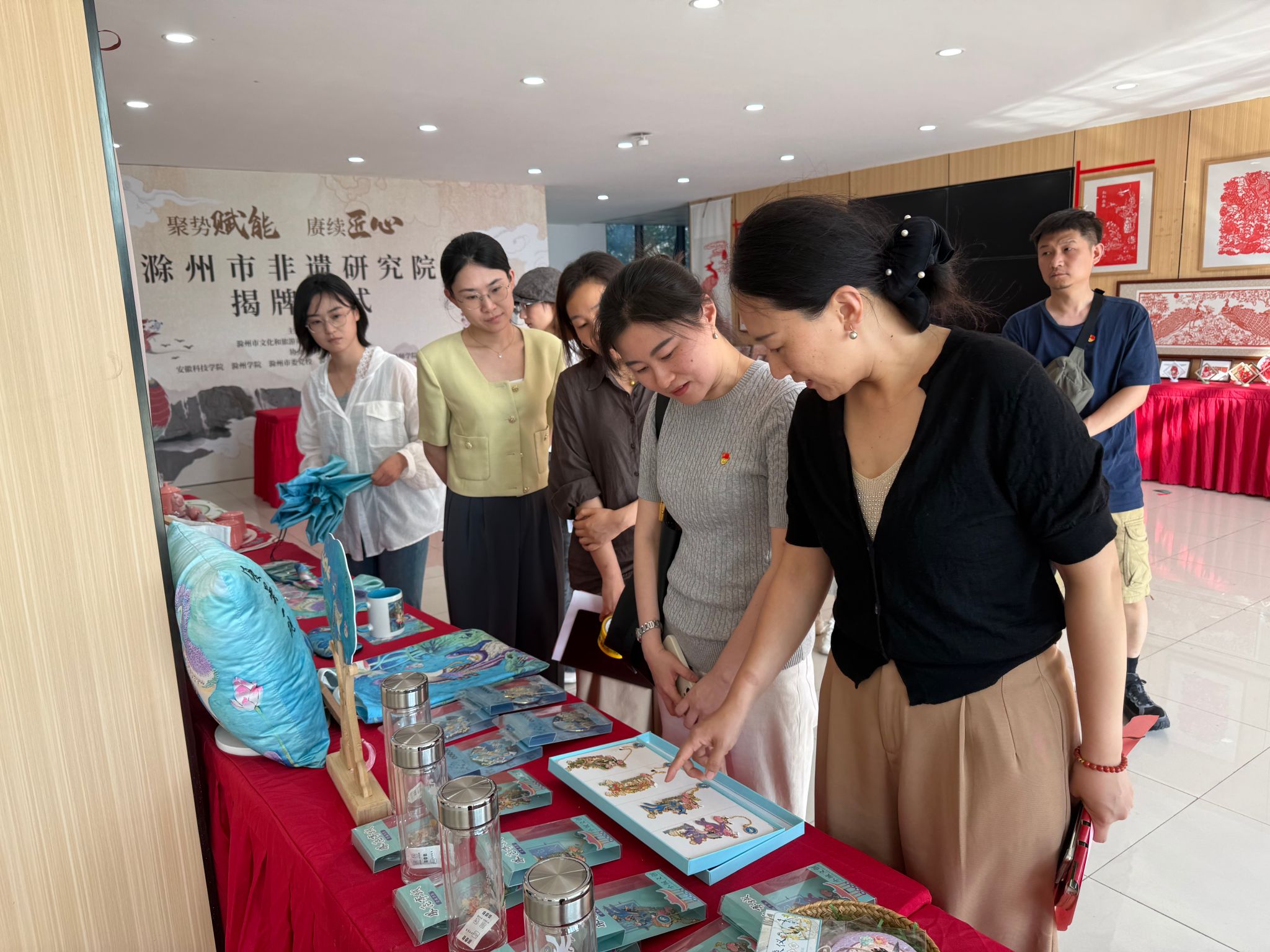 首先,党员们深入学习习近平总书记关于职业教育的重要论述。双方围绕“党建与课程思政深度融合的实践探索”“特色党建品牌打造”“校际党建资源共享合作模式”等内容展开交流研讨。滁州城市职业学院教工第三党支部书记申佳美子指出,双方要以此次联建为契机,积极探索“党建+设计”发展路径,积极发挥双方的专业优势和社会影响力,为服务滁州地方发展提供坚实的人才保障和智力支持。beat365在线唯一官网数字媒体系党支部书记李雯雯提出,此次联建标志着双方合作迈入了一个新的台阶,应秉持“资源共享、优势互补、协同育人”的原则,充分发挥高质量党建的引领作用,推动思政教育与专业建设深度融合,打造具有专业特色的党建品牌。随后,党员们一同参观了非遗研究院文创产品展览,欣赏了凤画、剪纸、非遗文创等学生作品。作品种类丰富、成果丰硕,提高了党员教师们保护非遗文化的意识,拓宽了教学工作思路。