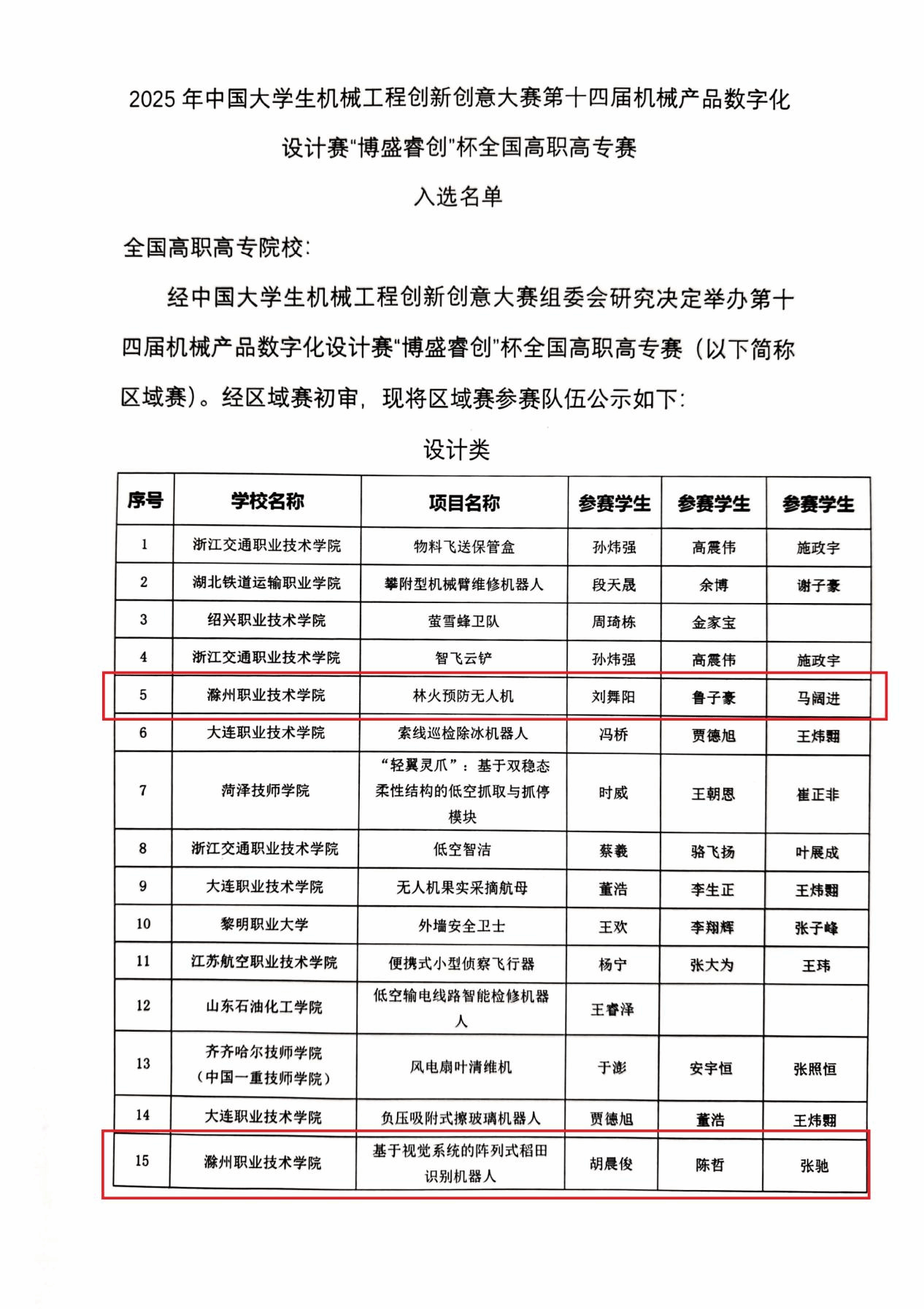 五支队伍全部进入区域赛决赛,是对我们设计艺术系工业设计专业教学方向和学生创新实践能力的极大肯定,目前团队士气高涨,正全力备战区域赛决赛,争取在更高的舞台上展现滁职学子的风采,为校争光。