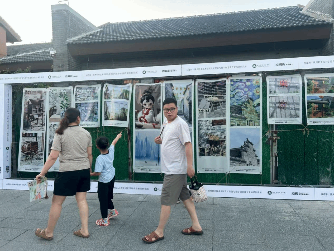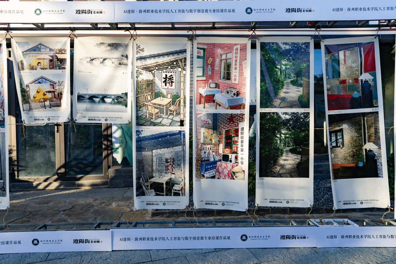 7月20日至21日,滁州市大学生艺术文创集活动在历史文化街区遵阳街火热开展。beat365传媒与设计学院“人工智能与数字创意”微专业师生携54项创新作品参展,以“AI遵阳”为主题,展现了人工智能技术与地域文化融合的前沿探索,成为活动中备受瞩目的亮点。