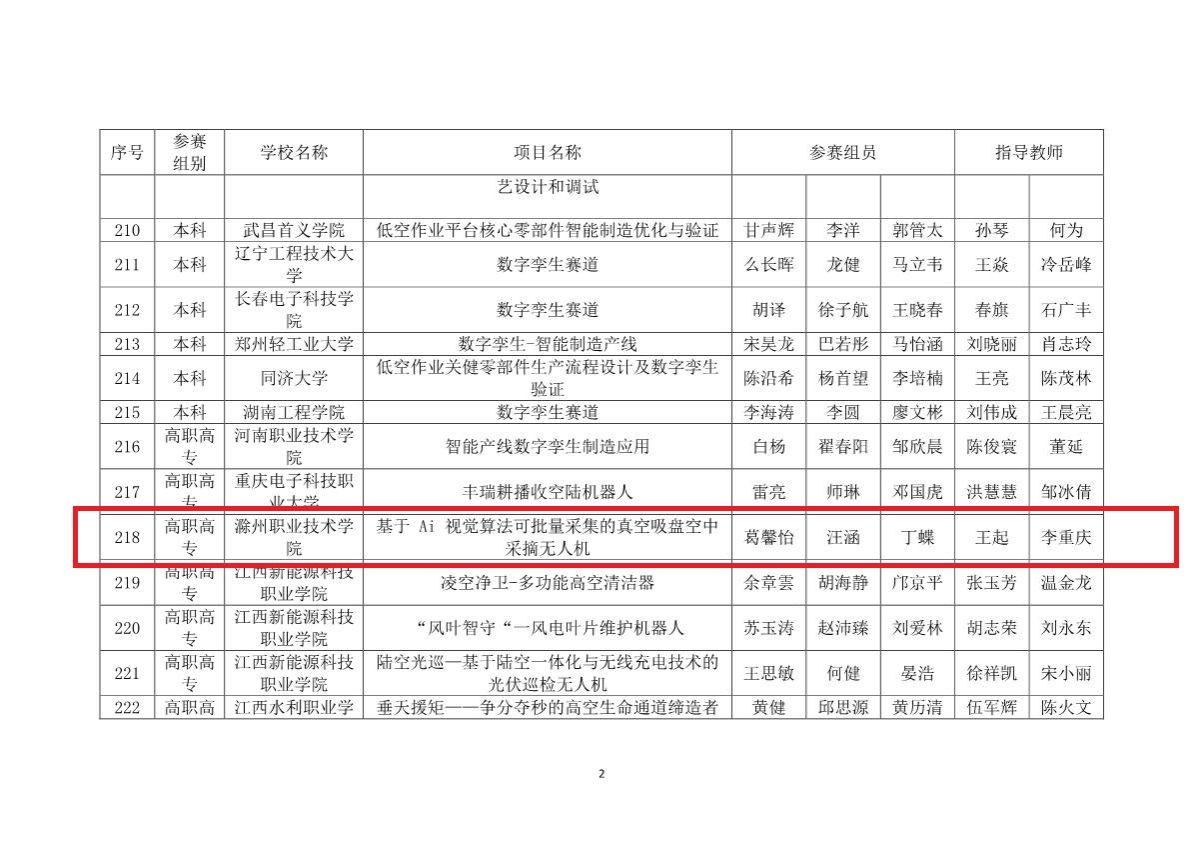 周晓龙、许慧、兰新余团队凭借作品《基于视觉系统与遥感技术的农业监测无人机》在全国总决赛现场比赛中脱颖而出,荣获全国二等奖;