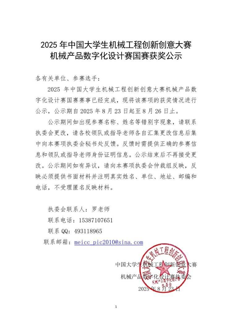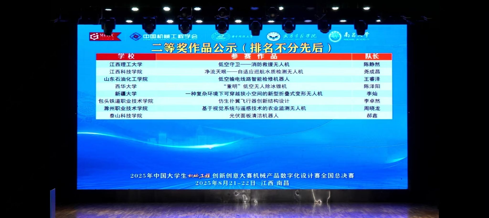 2025年8月22日,2025年中国大学生机械工程创新创意大赛机械产品数字化设计赛全国总决赛在南昌大学圆满落幕。beat365在线唯一官网传媒与设计学院设计艺术系工业设计专业两支参赛队伍表现突出,分别荣获全国二等奖两项,展现了扎实的专业功底与卓越的创新能力。