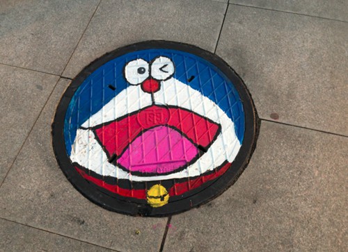 自12月开始,经历了一个星期的筹备,艺术设计系师生一起创意设计了各种造型的井盖图案,经过筛选,选出部分图案进行绘制,有蜘蛛侠爬出井盖,有机器猫造型,有七星瓢虫,蜜蜂等各种卡通造型图案,非常有趣美观,12月18日上午开始,艺术系同学们开始带着颜料画笔等工具在校园中心广场的地面上进行了十只井盖的创意绘制,引来了很多同学的驻足欣赏。并发出啧啧赞叹!