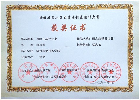艺术设计系学生在安徽省第二届大学生创意设计大赛取得优异成绩,并代表学院获得优秀组织奖。大赛一等奖获得者宛风琴同学受邀于6月9日在安徽电视台参加颁奖晚会。颁奖典礼盛况将在安徽电视台综艺频道播出,时间为2013年6月23日下午16:45。