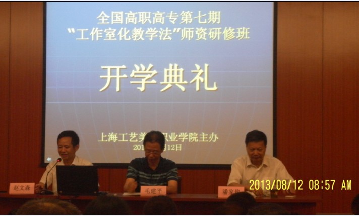 8月中旬,全国高职高专第七期“工作室化教学法”师资研修班在上海隆重举办。在学院和系部的大力支持与关注下,工业设计教研室主任王起、骨干教师蔡忠弟、李雯雯三位老师有幸参加了本次研修班的学习。