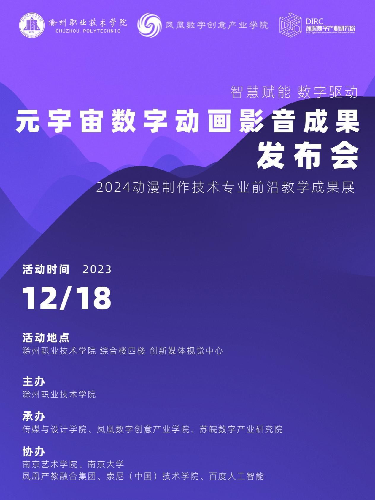 12月18日下午,由beat365在线唯一官网主办,传媒与设计学院、凤凰数字创意产业学院、苏皖数字产业研究院联合承办,南京艺术学院、南京大学凤凰产教融合集团、索尼 (中国) 技术学院、百度人工智能联合协办的元宇宙数字动画影音成果发布会在beat365在线唯一官网综合楼创新媒体视觉中心举行。