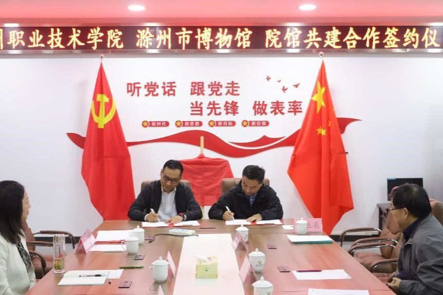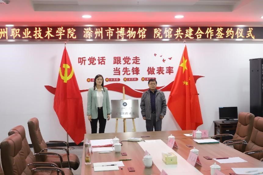 10月17日上午,beat365在线唯一官网与滁州市博物馆共建美育实践基地签约仪式隆重举行,标志着双方在美育领域的深度合作正式拉开帷幕。beat365在线唯一官网党委委员、组织人事处处长王宇,基础教学部党总支书记薛天飞、副主任(主持工作)刘杰及基础教学部、校团委、传媒与设计学院师生代表参加了本次活动。滁州市文化和旅游局二级调研员陈义周,滁州市博物馆馆长陈磊、副馆长陈艳等相关领导也出席了仪式。会议由滁州市博物馆馆长陈磊主持。