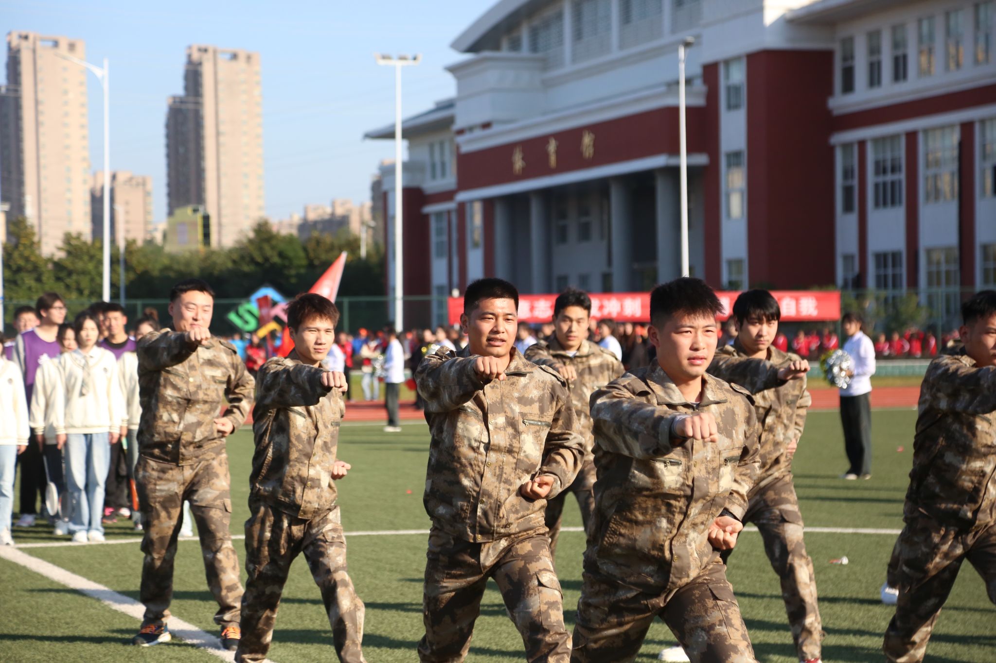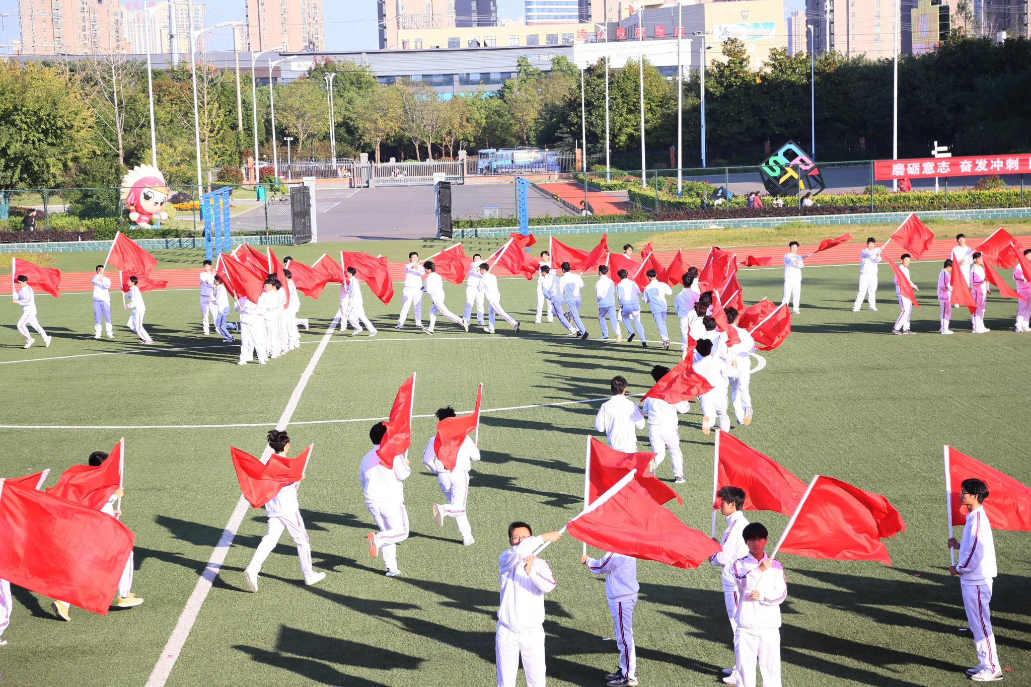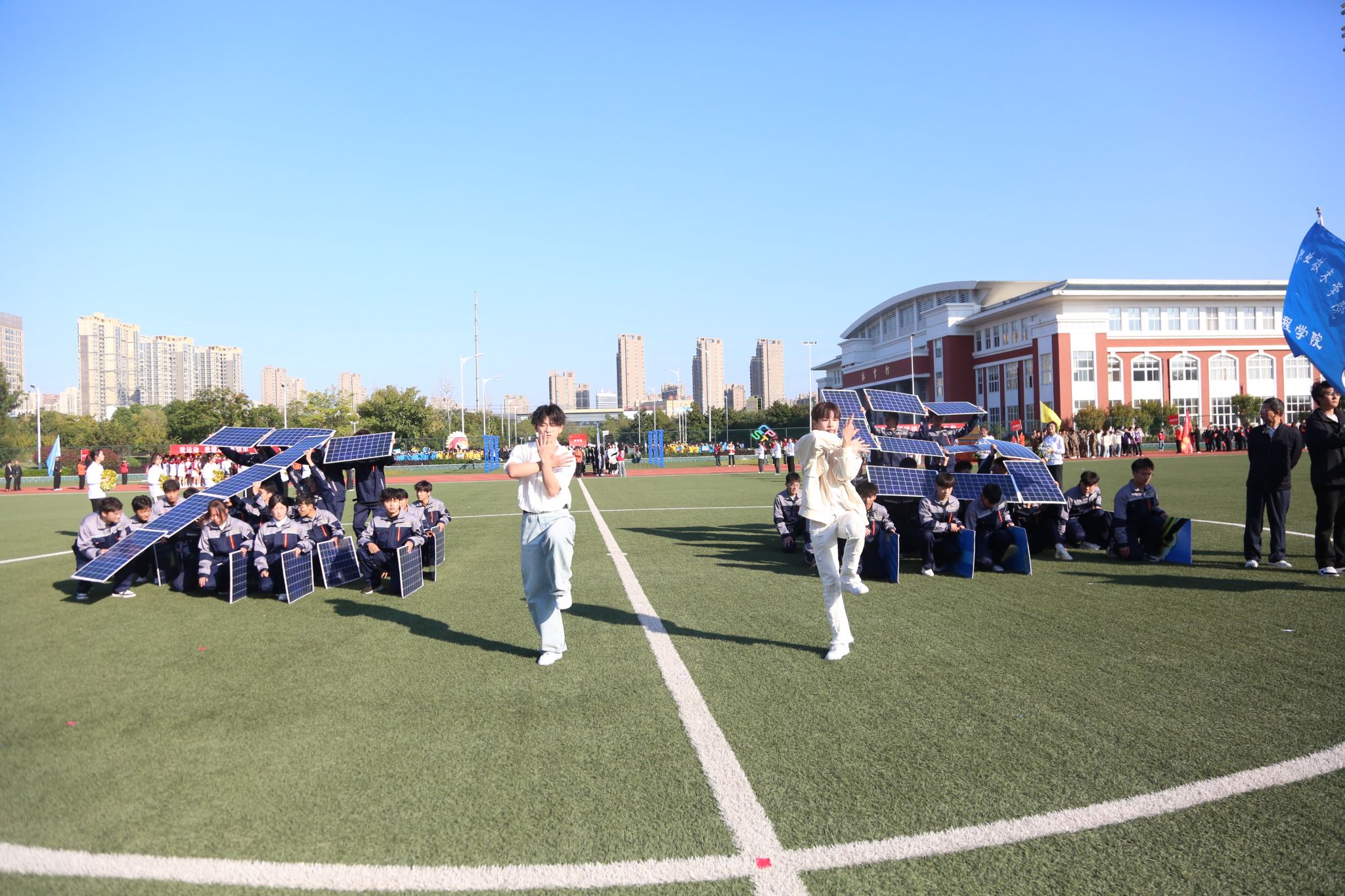 开幕式上,beat365学生进行了广播体操比赛和大型团体操表演“匠心筑梦 当‘燃’有我”。他们热情洋溢,英姿勃发,充分展示了滁职院人团结奋进、自强不息的青春风采,赢得了阵阵掌声。