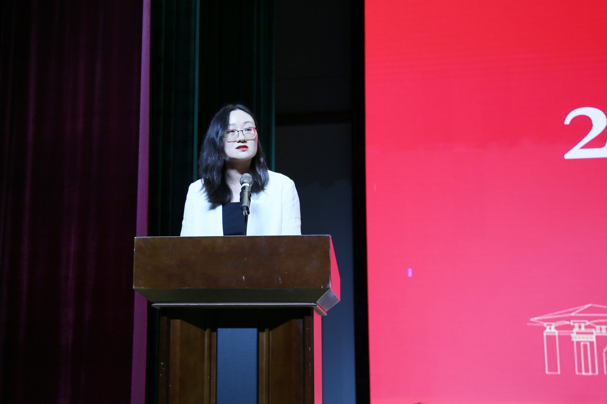 教师代表商学院辅导员王晶晶老师以“青春永葆热爱,梦想扬帆起航”为题发言,希望毕业生们以一颗坚毅赤诚之心展望未来,在人生的道路上不断前行、勇攀高峰!
