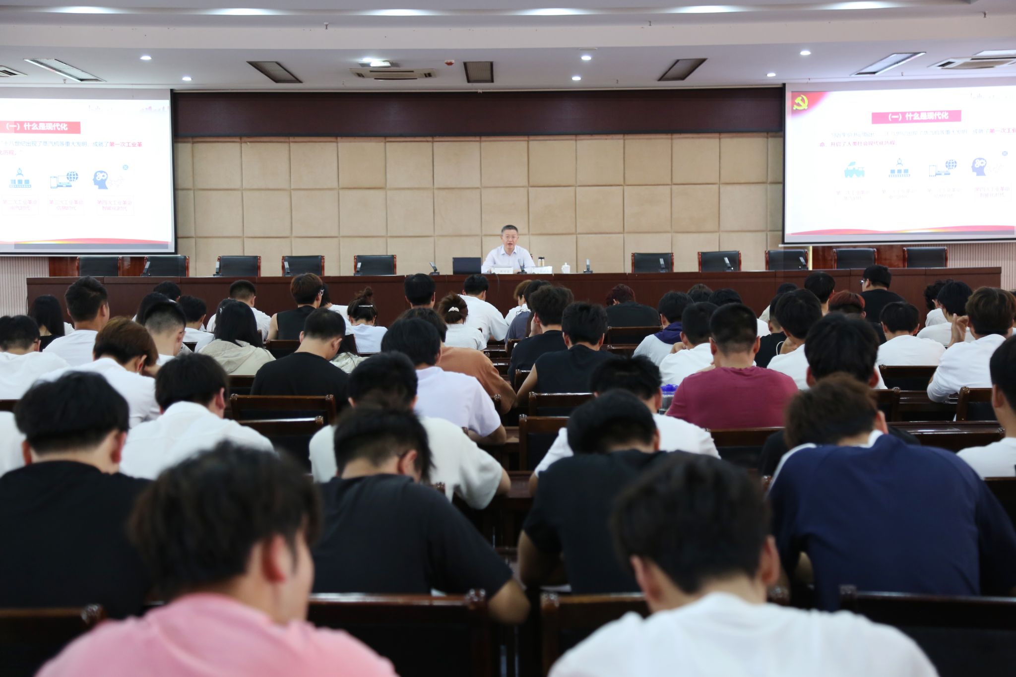 6月12日下午,校党委书记曹付忠“以中国式现代化全面推进中华民族伟大复兴”为主题做形势与政策报告会,机械与汽车工程学院2022级200余名学生、机械与汽车工程学院和马克思主义学院部分教师代表共同聆听。