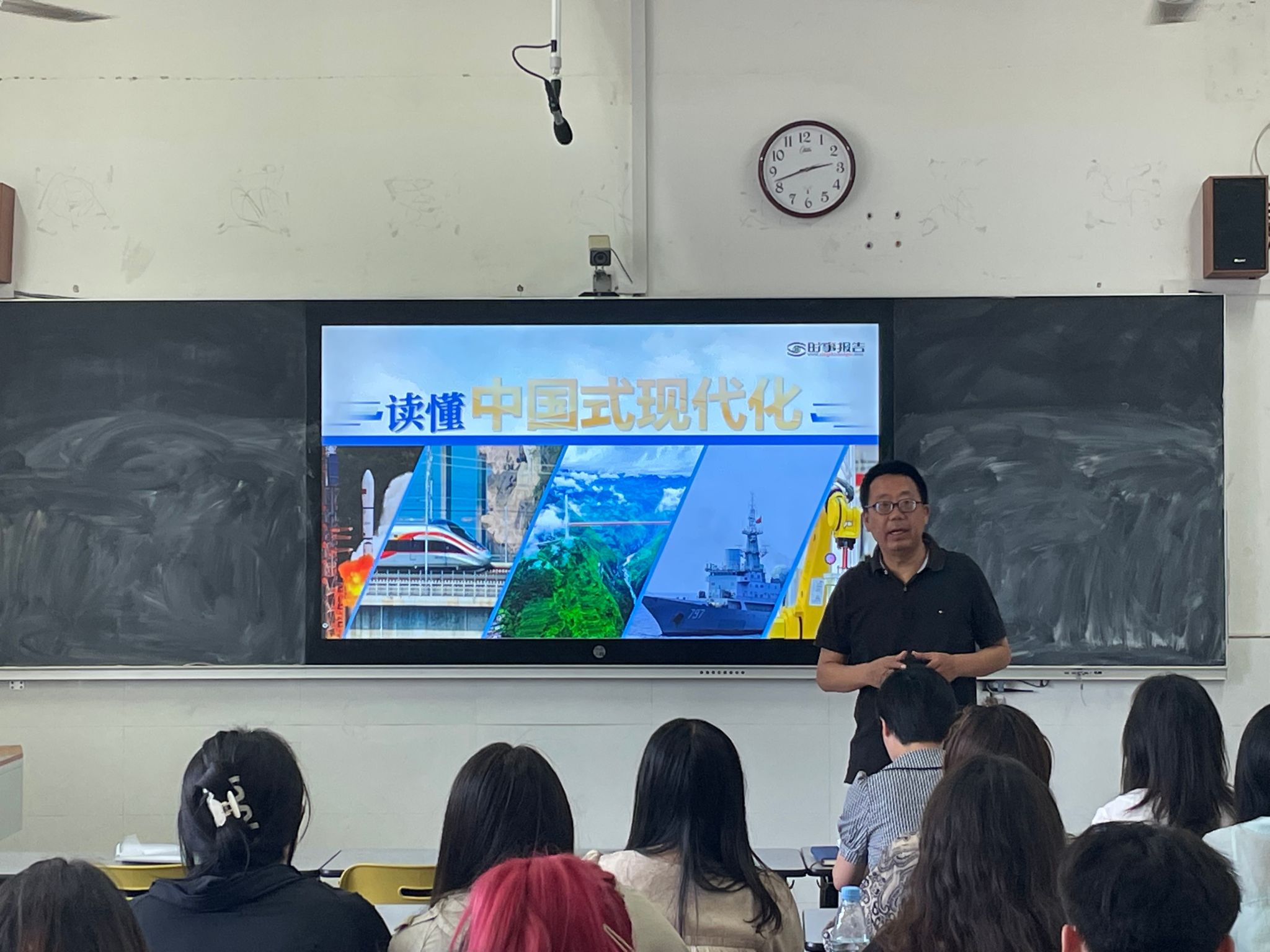 为深入学习贯彻党的二十大精神,引领学生深刻理解中国式现代化,6月3日下午,校党委委员、工会主席李平权走进教室,讲授《读懂中国式现代化》专题形势与政策课。传媒与设计学院全体党员教师、学生代表现场听课。