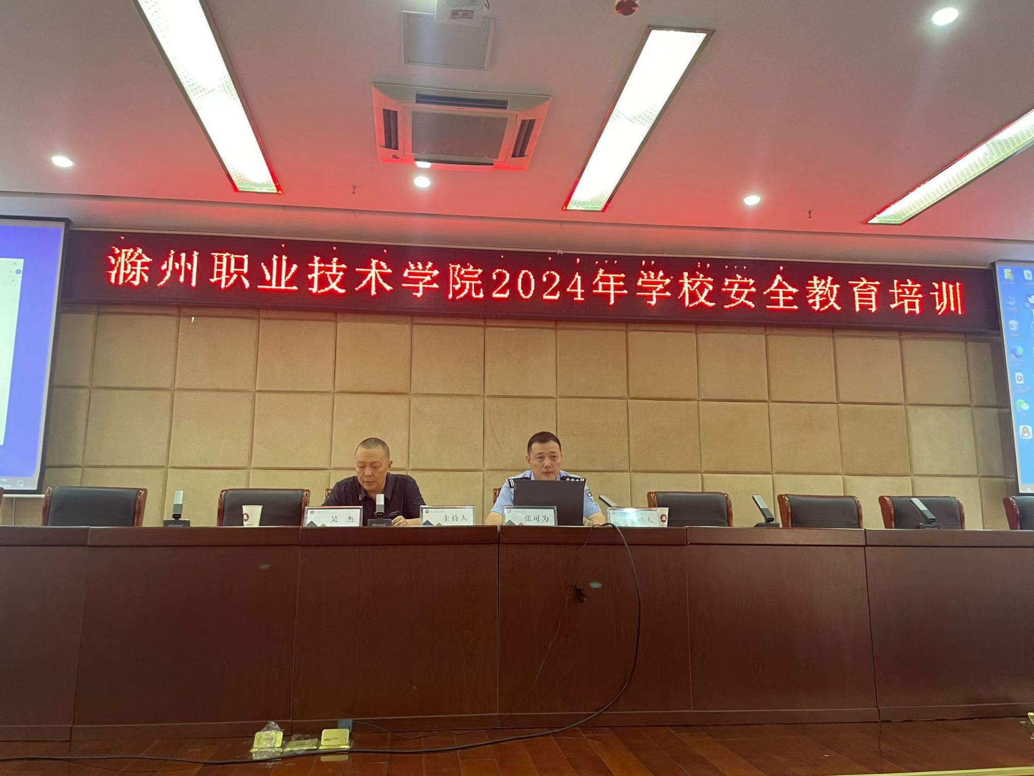 培训邀请滁州学院安全保卫处处长王岽、滁州市公安局南谯分局国保支队副支队长张可为、滁州市南谯区消防救援大队吴昆担任主讲。针对校园安全体系建设、交通安全、学生心理健康、反电诈、防溺水、意识形态领域、消防安全等重点领域开展专项培训,并就如何做好以上各领域的安全管理工作进行讨论交流。