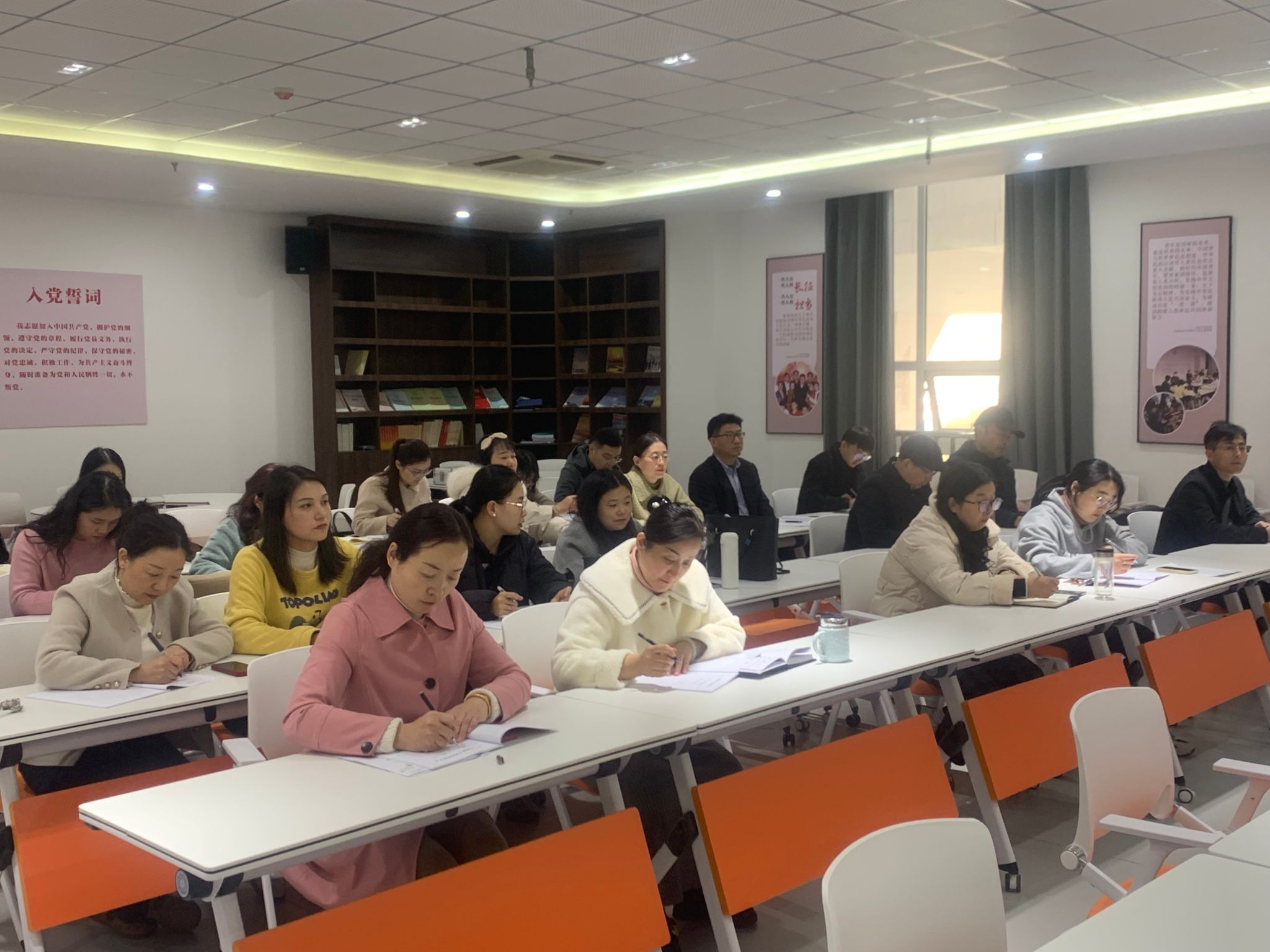 按照学校主题教育的总体部署,11月15日,校党委委员、宣传统战部部长王冬以《开辟马克思主义中国化时代化的新境界》为题,在“大思政课”数字研学中心讲授主题教育专题党课。马克思主义学院全体党员参加。