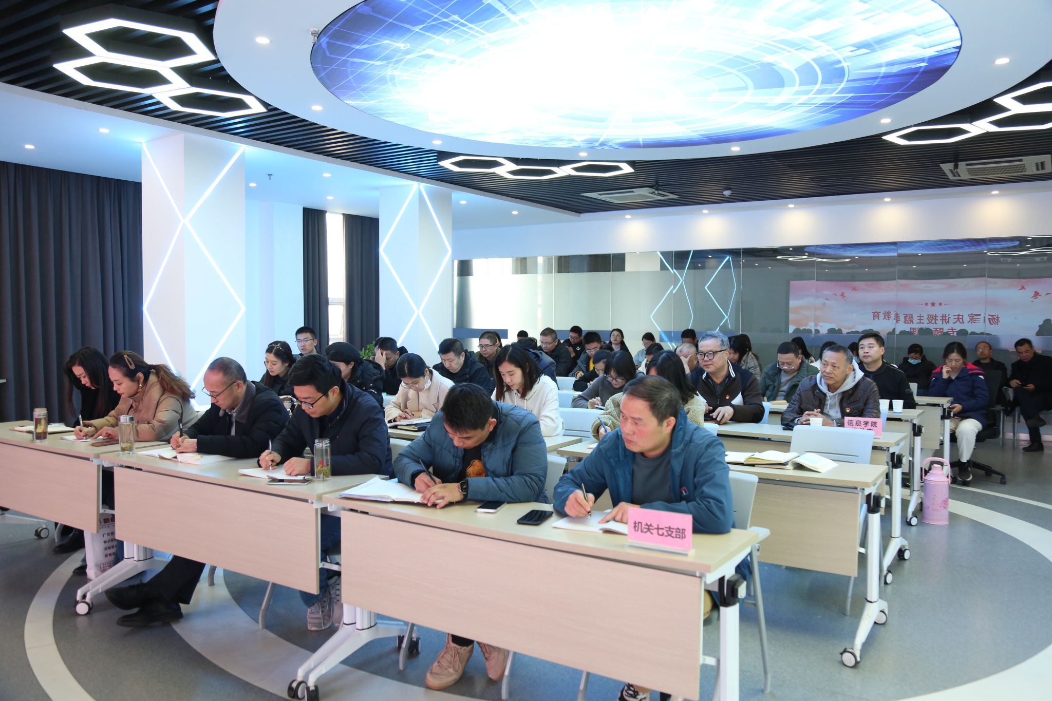 为深入贯彻落实习近平新时代中国特色社会主义思想和党的二十大精神,根据中央和上级党组织关于开展第二批主题教育的有关要求,11月15日,校党委副书记杨家庆在综合楼VR实训室为机关七支部、信息工程学院党员教师讲授主题教育专题党课。专题党课由信息工程学院党总支书记程洪斌主持。