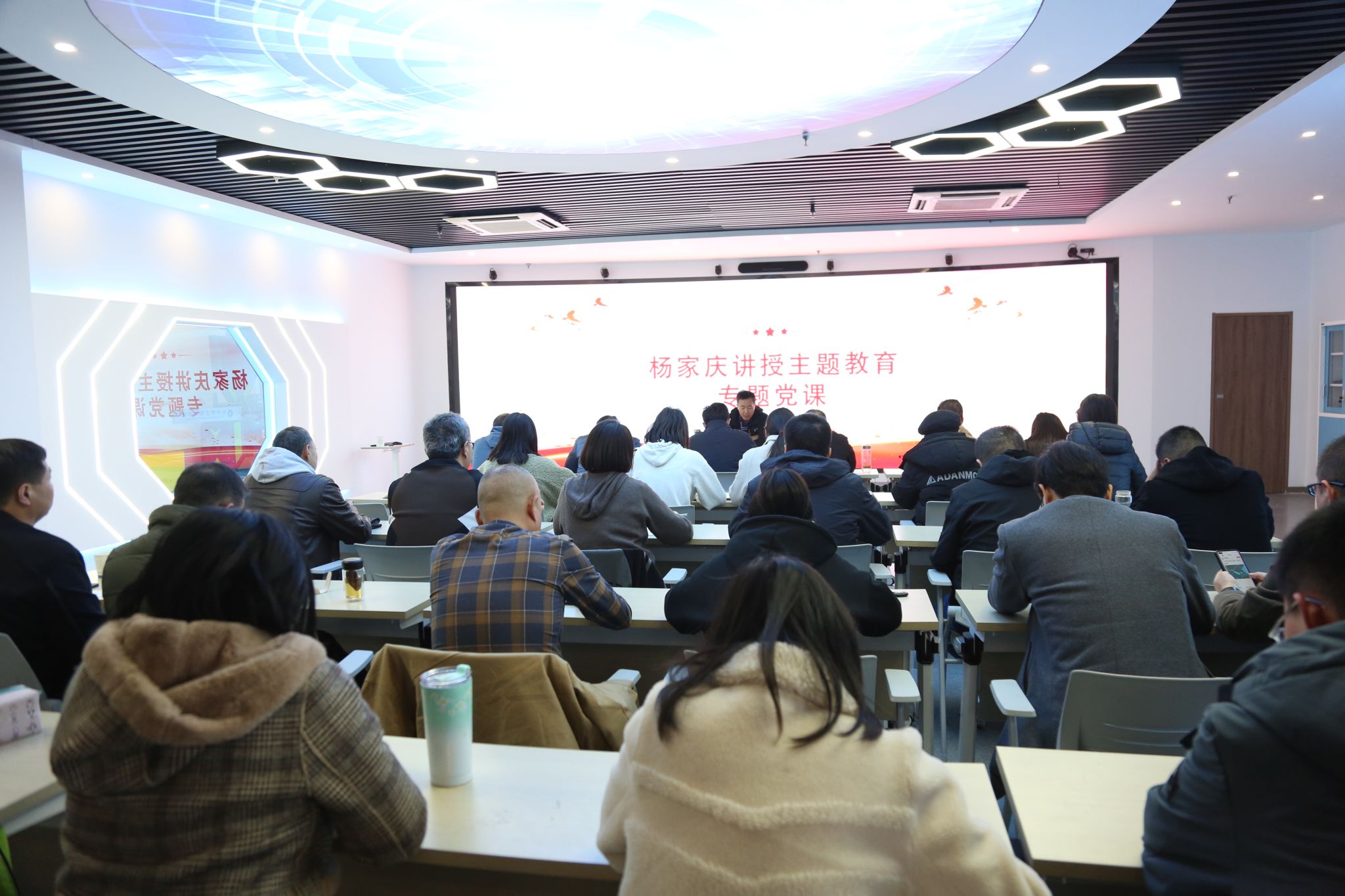 杨家庆结合自身学习体会和工作实际,以《学思想 明方向 见行动》为题,从“深刻领悟习近平新时代中国特色社会主义思想开辟了马克思主义中国化时代化的新境界”“准确把握新时代新征程中国共产党的使命任务”“奋力开创学校高质量高发展的新局面”等三个方面进行了详细阐述。