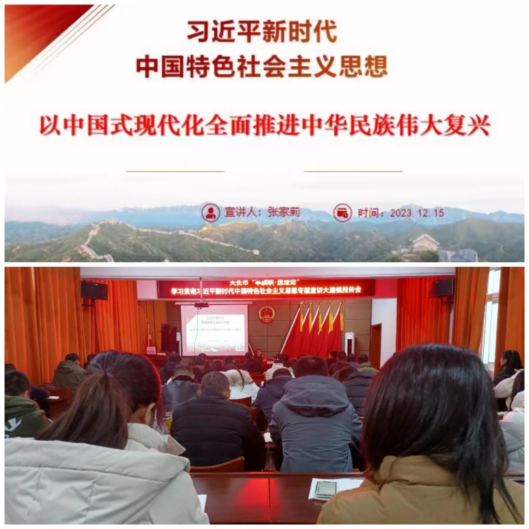 张家莉从“为什么说实现中华民族伟大复兴进入了不可逆转的历史进程、如何擘画全面建成社会主义现代化强国的宏伟蓝图、中国式现代化是一种什么样的现代化”三个切入点阐述了“中国式现代化的中国特色、中国式现代化的本质要求、中国式现代化创造了人类文明新形态、推进中国式现代化需要把握的重大原则和重大关系”以及必须把实现人民对美好生活的向往作为现代化建设的出发点和落脚点,在推动高质量发展的同时,解决好地区差距、城乡差距、收入分配差距,着力维护和促进社会公平正义,坚决防止两极分化。本次宣讲阐明了中国式现代化的内在规定性,明确了中国式现代化的领导力量、发展道路和根本方向、总体布局和战略要求,以及对人类文明和世界发展的重大意义。