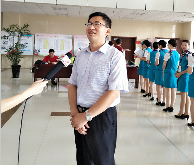 beat365在线唯一官网院长助理、招生就业处处长穆松到面试现场看望参加招聘会的工作人员和应聘者并接受了滁州电视台《新滁周报》记者的采访。穆松指出,beat365在线唯一官网非常重视本次招聘会,在学院毕业生中广泛宣传,同时也积极配合中航国铁做好面试场地的布置和相关服务工作。穆松还鼓励应聘者,有梦想就要大胆去尝试,beat365在线唯一官网也助力有航空梦的孩子们实现航空梦。