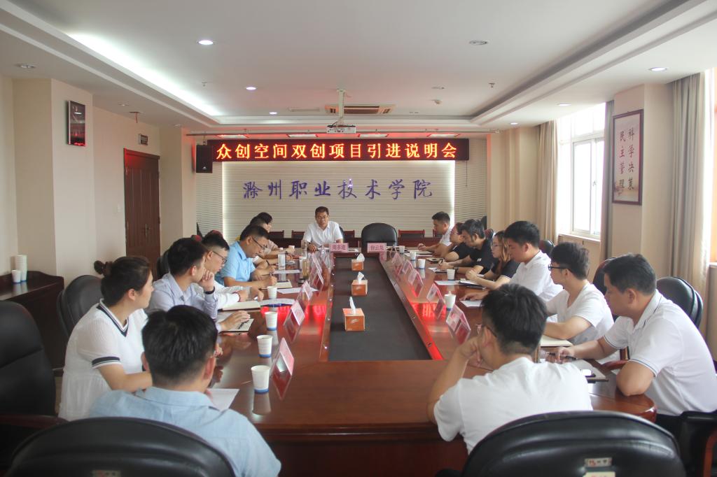 9月17日上午,学校在综合楼804会议室组织召开众创空间项目引进说明会。校党委委员、校长助理、招生就业处处长穆松,创新创业学院常务副院长、招生就业处副处长周多道以及部分在滁高科技企业代表参加了会议,会议由招生就业处副处长徐云龙主持。