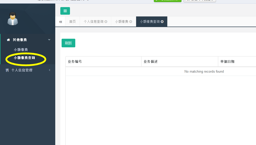 进入系统后点击左上角“其他缴费”菜单下“小额缴费”,如下图:(本系统支持建行网银、微信扫码支付),