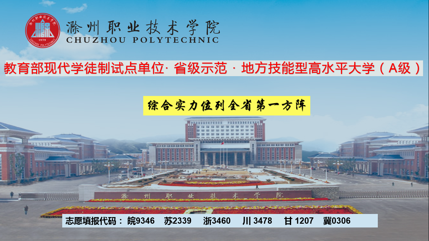 beat365在线唯一官网是一所综合性公办普通高等职业院校,位于安徽历史文化名城滁州市(2019年经济总量位居全省第三),紧邻国家4A级风景名胜区琅琊山。学校占地总面积1000余亩,设有13个教学单位,开设高职专业53个,教职工547人,全日制在校生1.3万余人。