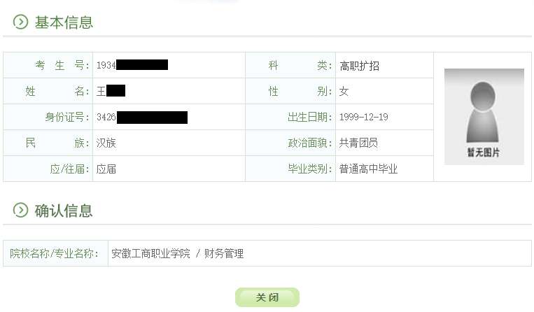 3.退出后重新登录gkbm.ahzsks.cn,可以查询到自己确认的院校: