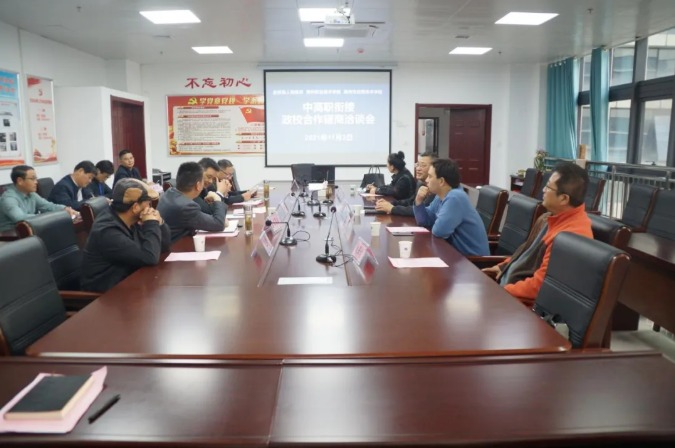 与会人员还围绕中高职衔接合作办学的培养模式、招生、人才培养方案等问题,进行了深入的交流探讨。会后,穆松一行在陈劲松等领导的陪同下实地考察了该校京东产教融合示范基地和部分实训室。