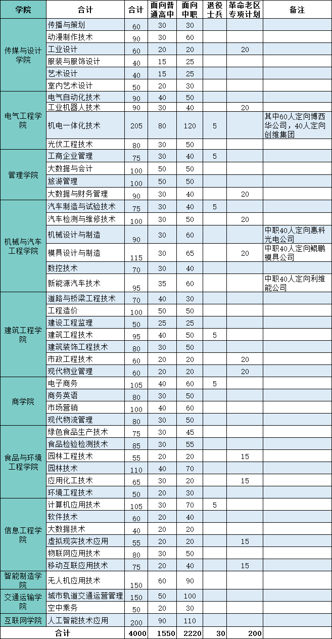 二、招生计划(最终计划以学校章程公布为准)