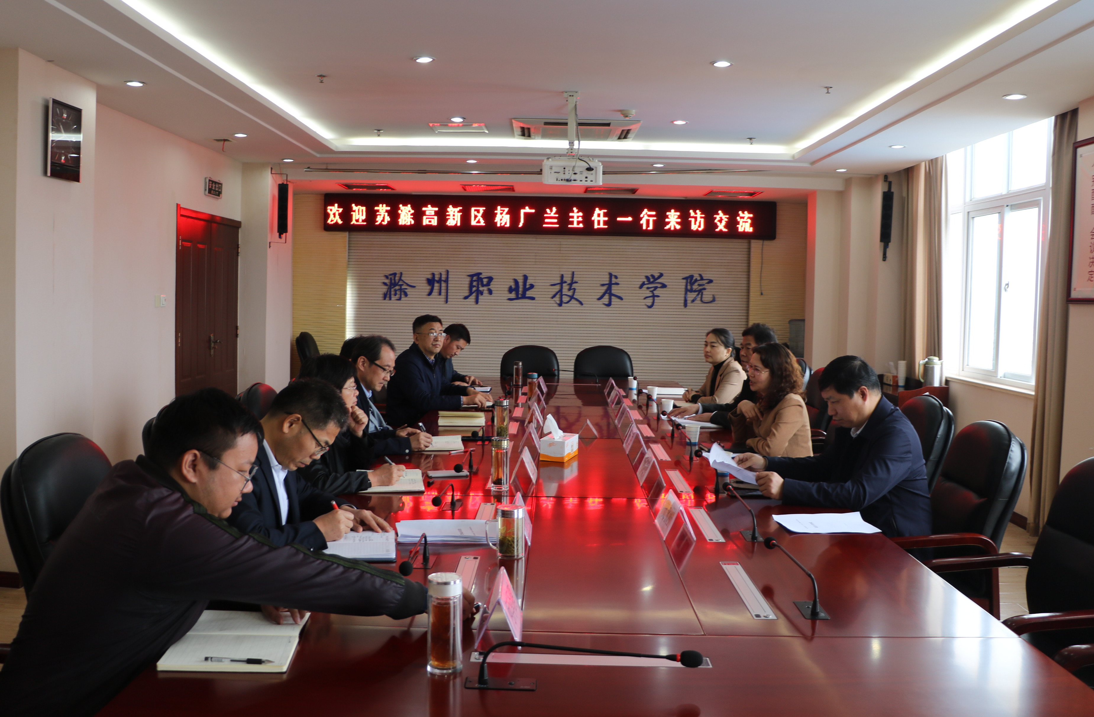 10月28日上午,中新苏滁高新技术产业开发区管工委书记、管委会主任杨广兰一行来beat365考察交流。校党委副书记、校长许雪峰,党委副书记杨家庆,校党委委员、副校长江洁,校党委委员、校长助理、招生就业处处长穆松以及招生就业处有关负责同志热情接待。