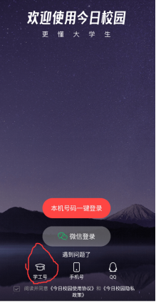 3.点击右上角的【切换】选择对应的学校名称,输入正确的账号/密码(未使用过今日校园的用户账号为身份证号,密码默认6个1),点击登录。首次登录会提示绑定手机号,根据提示输入手机号,接收短信验证码,即可完成登录。