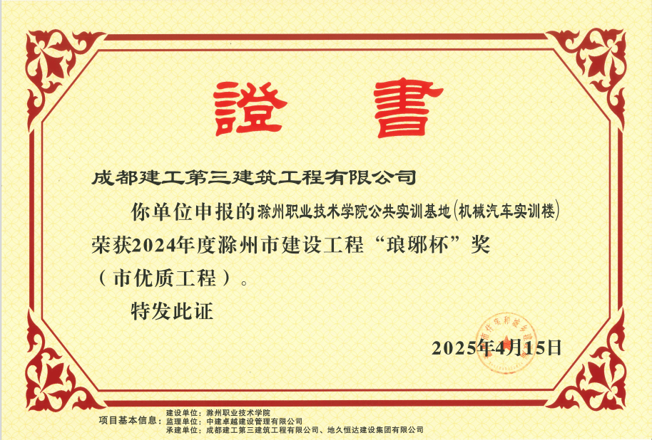 本工程在建设之初就以创滁州市优质工程“琅琊杯”奖为质量目标。此次获奖,对beat365工程建设质量控制、全过程管理提供经验,为今后更好地创建优质工程打下坚实基础。
