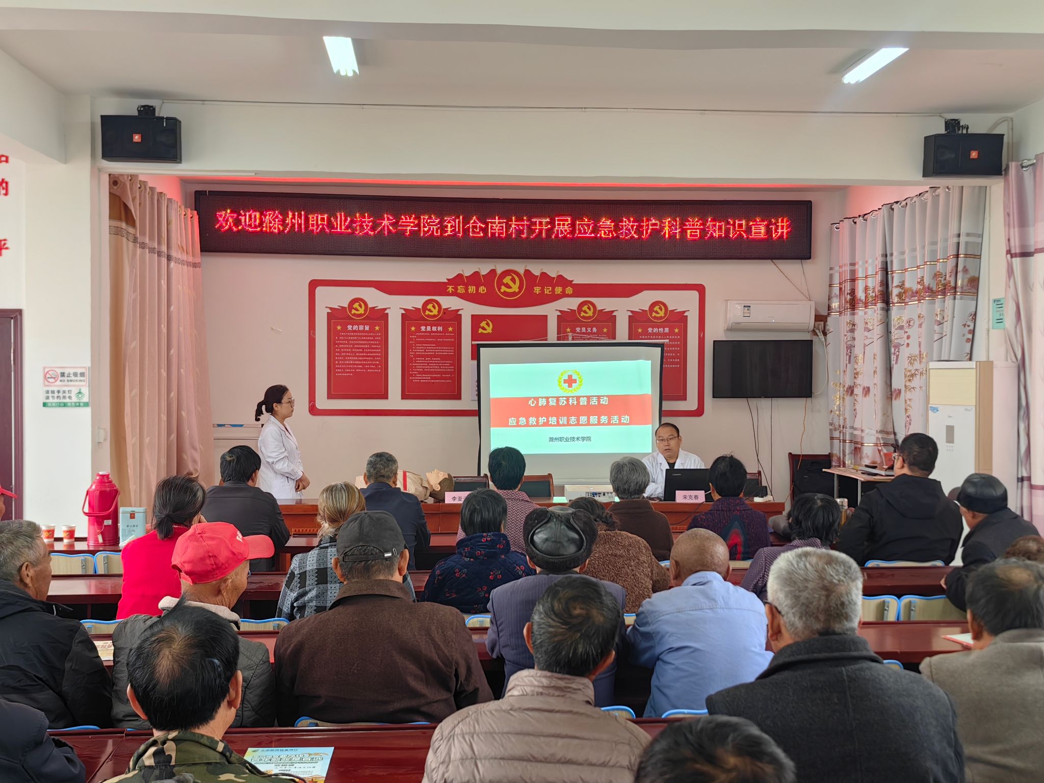 10月21日上午,科技处副处长刘青一行深入定远县仓镇仓南村开展应急救护科普知识宣讲。仓南村党总支书记蒋荣、beat365选派驻村干部黄凯、驻村工作队和部分村民参加本次科普活动。
