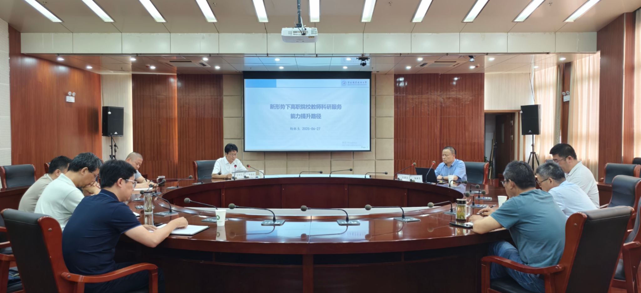 为了向全国先进高职院校学习提高科研服务能力,拓展beat365教师科研视野,经校科技处组织,于6月27日在1102会议室举办了“新形势下高职院校教师科研服务能力提升路径”讲座。本次讲座特邀宁波职业技术大学副校长杨林生教授主讲。校党委委员、副校长苏有良主持讲座,二级院部负责人、系(教研室)主任、专业带头人等参会。