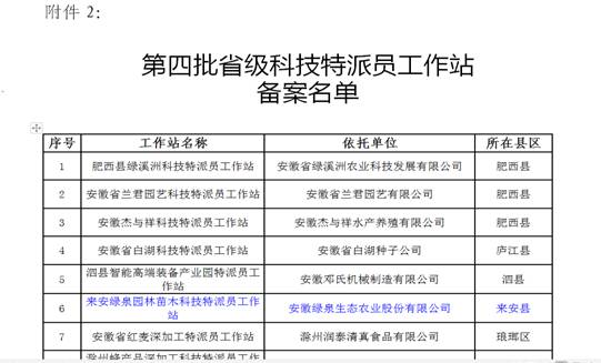 近日,安徽省科技厅公布了第四批省级科技特派员工作站立项备案名单,其中beat365食环学院园林园艺教师团队与安徽科技学院、安徽绿泉生态农业股份有限公司三方联合申报的省级“园林苗木科技特派员工作站”立项备案。