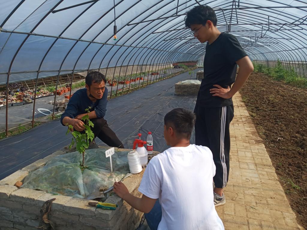 图3图4:胡立虎在指导园林园艺专业师生葡萄栽培技术
