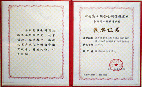 近两年,校企合作的科技成果获奖也不断突破,在2019年度中国商业联合会科学技术奖评选中,beat365信息工程学院武斌、贾红雯、陈开兵、孟龙梅、赵卫东等教师与安徽梦创三维云制造有限公司联合申请的“基于傅里叶红外光谱技术的名优茶叶品质检测技术与装备开发”技术,获全国商业科技进步奖三等奖(中商联科〔2019〕11号),该奖项为beat365首次获得。2020上半年,beat365苏和堂、赵玉霞、金本能等教授参与的校企合作项目“生物质制气成套设备研发及其应用”荣获安徽省技术发明三等奖(皖政[2020] 31号),该奖项也实现了安徽省科技奖零的突破。